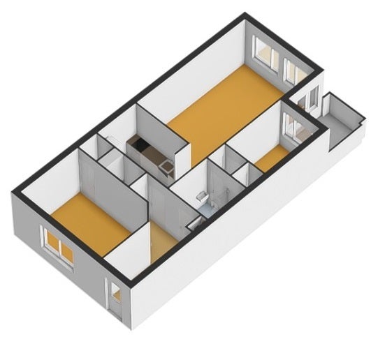 - De galerijflat heeft een woonoppervlakte van 73 m² en beschikt over 3 kamers, waarvan 2 slaapkamers;