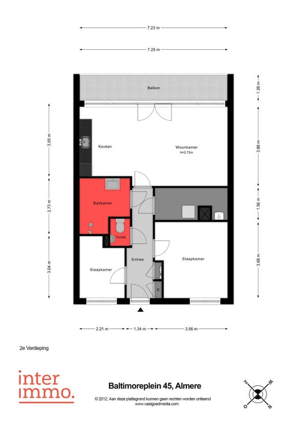 - De galerijflat heeft een woonoppervlakte van 68 m² en beschikt over 3 kamers, waarvan 2 slaapkamers;