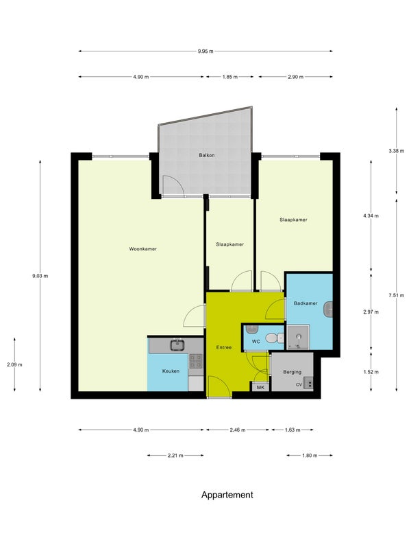 - De galerijflat heeft een woonoppervlakte van 82 m² en beschikt over 3 kamers, waarvan 2 slaapkamers;