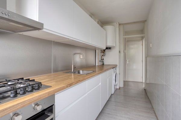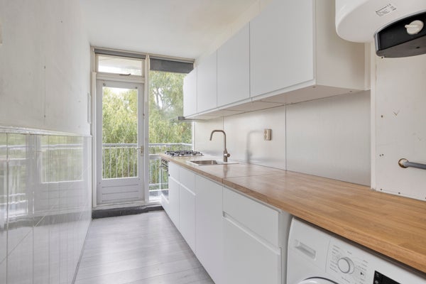 - De portiekwoning heeft een woonoppervlakte van 54 m² en beschikt over 3 kamers, waarvan 2 slaapkamers;