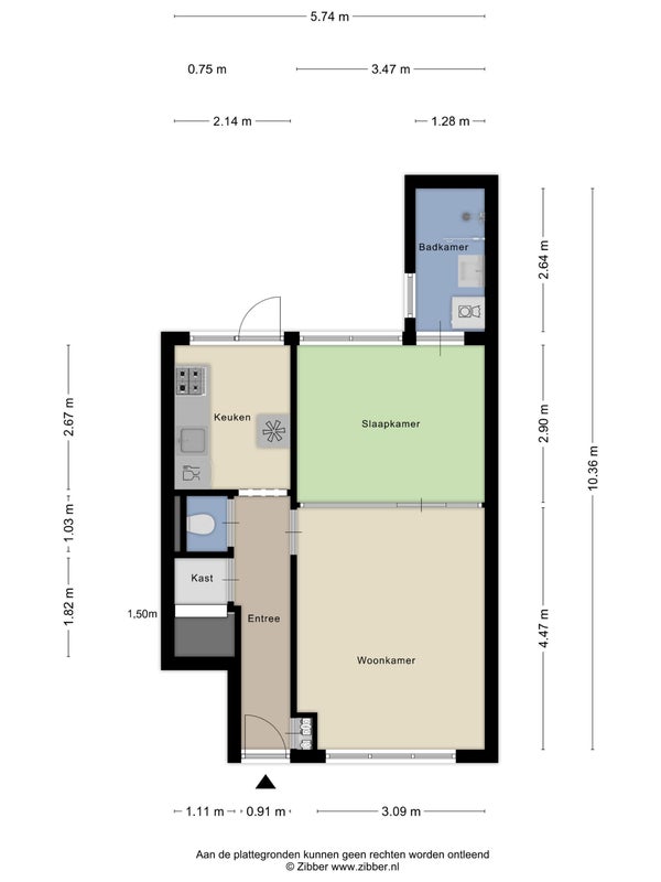 - De benedenwoning heeft een woonoppervlakte van 44 m² en beschikt over 2 kamers, waarvan 1 slaapkamer;