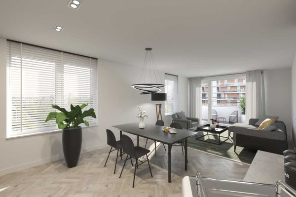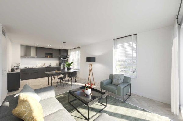 - De galerijflat heeft een woonoppervlakte van 77 m² en beschikt over 3 kamers, waarvan 2 slaapkamers;