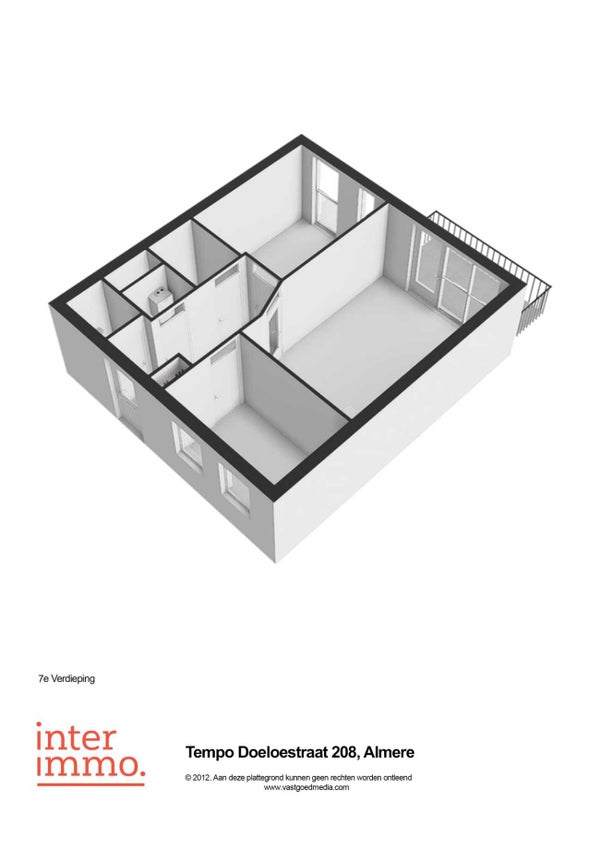 - De galerijflat heeft een woonoppervlakte van 50 m² en beschikt over 3 kamers, waarvan 2 slaapkamers;