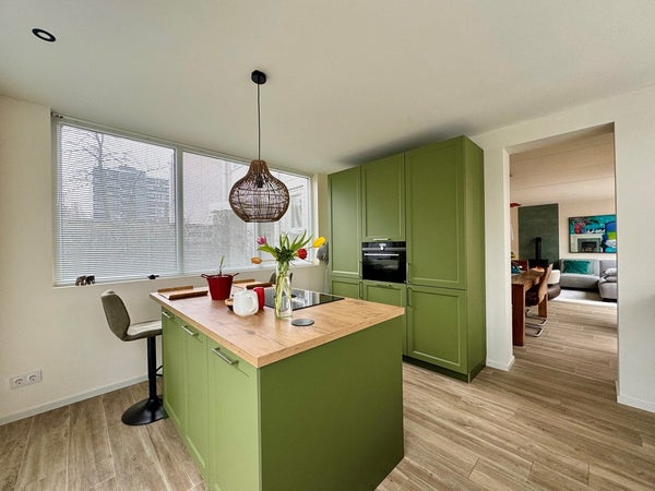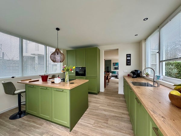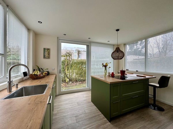 De woonkamer, keuken en badkamer zijn voorzien van vloerverwarming
