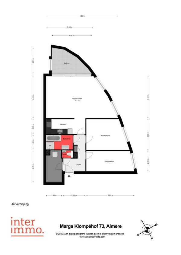 - De galerijflat heeft een woonoppervlakte van 94 m² en beschikt over 3 kamers, waarvan 2 slaapkamers;