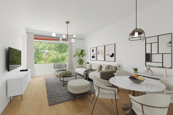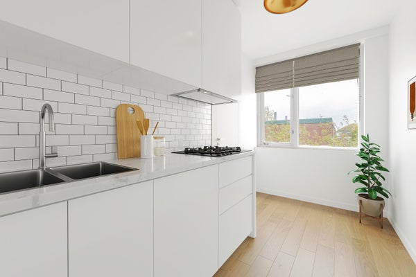 • De portiekflat heeft een woonoppervlakte van 74 m² en beschikt over 4 kamers, waarvan 3 slaapkamers;