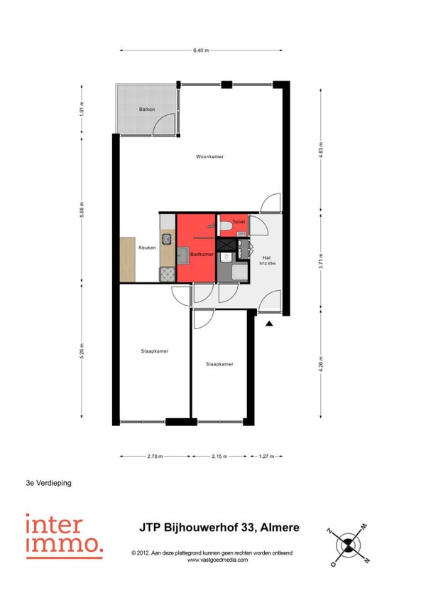 - De galerijflat heeft een woonoppervlakte van 73 m² en beschikt over 3 kamers, waarvan 2 slaapkamers;