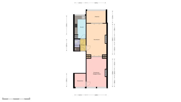 - De galerijflat heeft een woonoppervlakte van 68 m² en beschikt over 4 kamers, waarvan 2 slaapkamers;