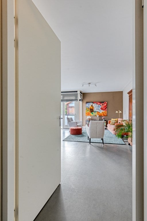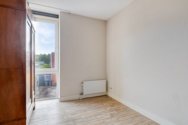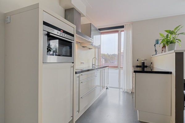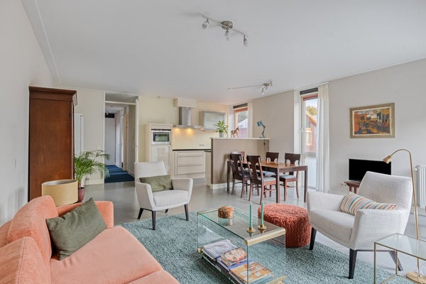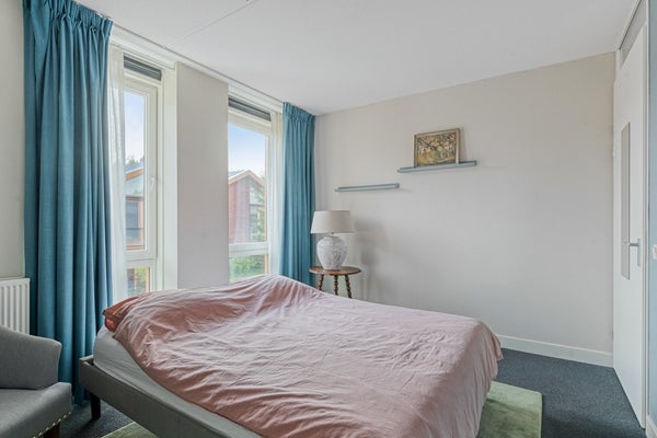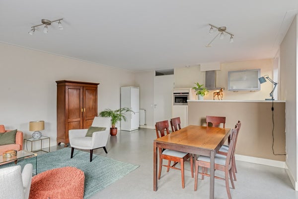 - De portiekflat heeft een woonoppervlakte van 77 m² en beschikt over 3 kamers, waarvan 2 slaapkamers;