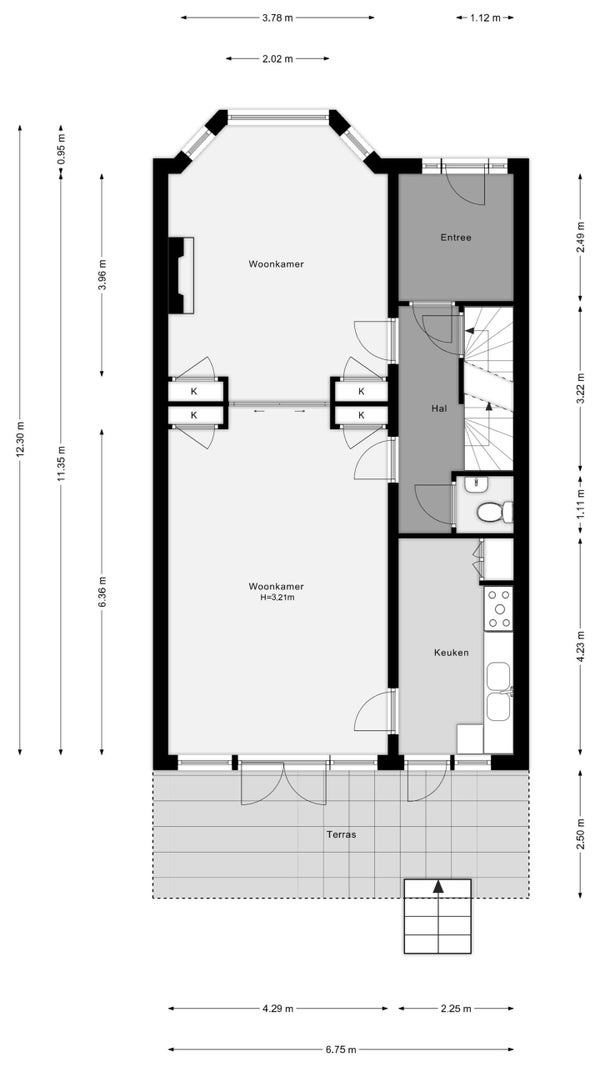 - De tussenwoning heeft een woonoppervlakte van 215 m² en beschikt over 8 kamers, waarvan 7 slaapkamers;