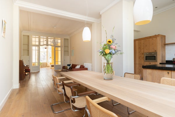 - De tussenwoning heeft een woonoppervlakte van 255 m² en beschikt over 8 kamers, waarvan 5 slaapkamers;