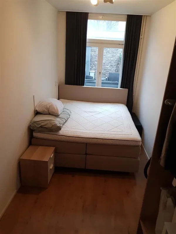 Mooi appartement gelegen op de eerste etage. Het appartement bestaat uit een woonkamer (25 m2) met open keuken, slaapkamer en een badkamer met ligbad, douche, wastafel en toilet. Het appartement beschikt over een ruim dakterras en er is een fietsenberging aanwezig. Huur is exclusief kosten voor water, elektriciteit, CAI en huur boiler.
