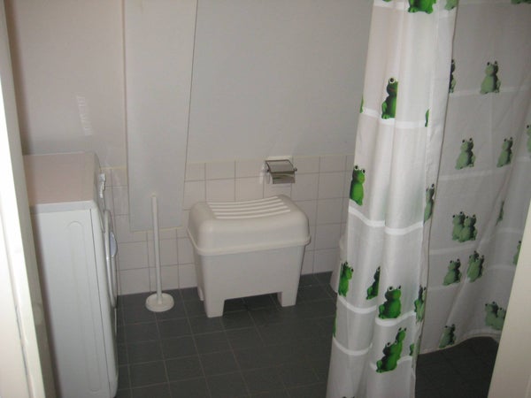 - Keurige badkamer met inloopdouche, wastafel, was/droogcombinatie en toilet