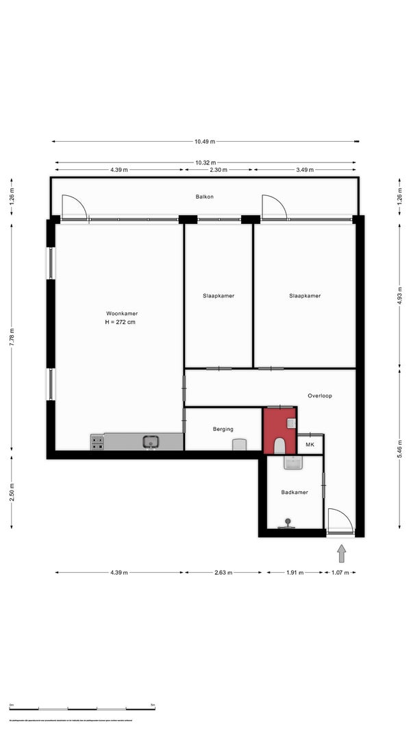 - De galerijflat heeft een woonoppervlakte van 89 m² en beschikt over 3 kamers, waarvan 2 slaapkamers;