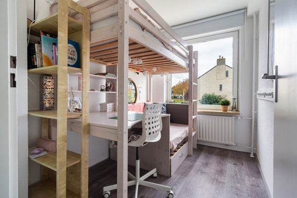 - De tussenwoning heeft een woonoppervlakte van 135 m² en beschikt over 7 kamers, waarvan 5 slaapkamers;