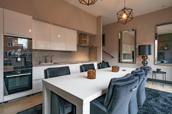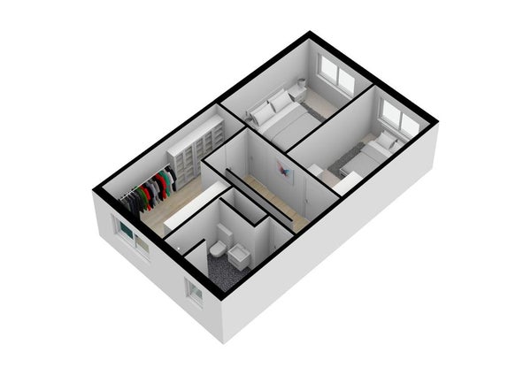 - De galerijflat heeft een woonoppervlakte van 155 m² en beschikt over 7 kamers, waarvan 5 slaapkamers;