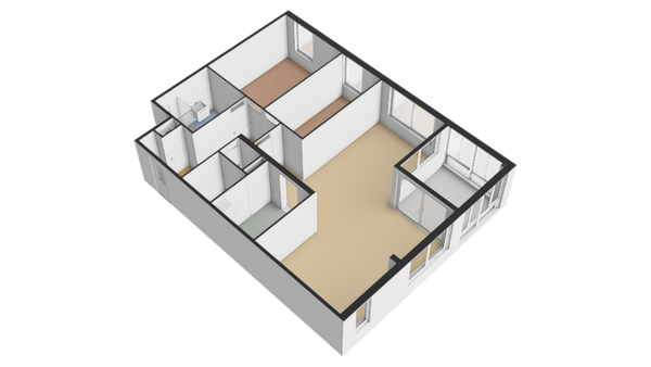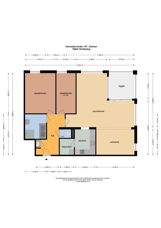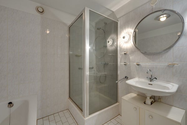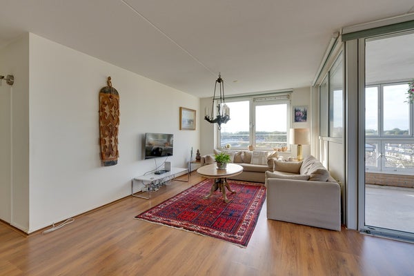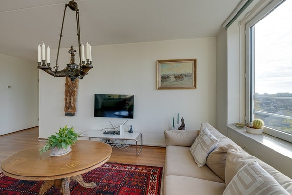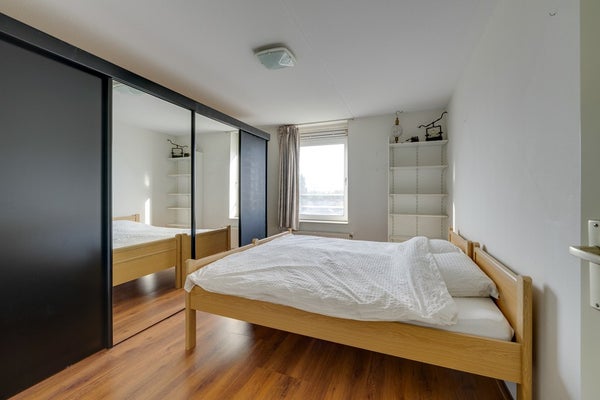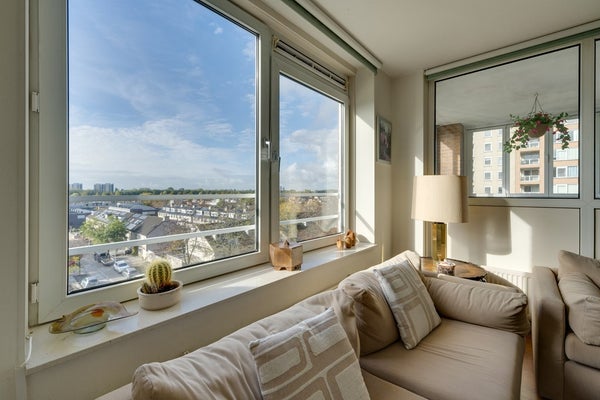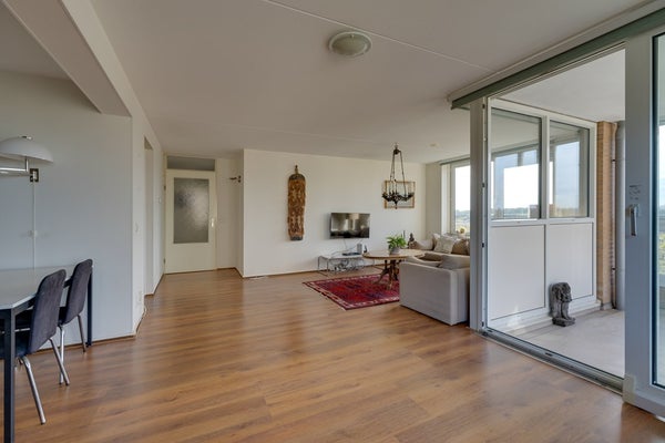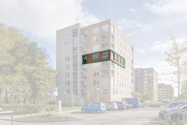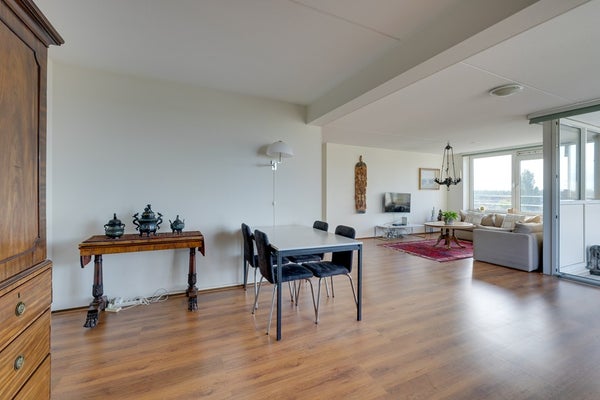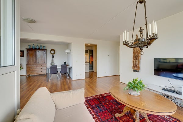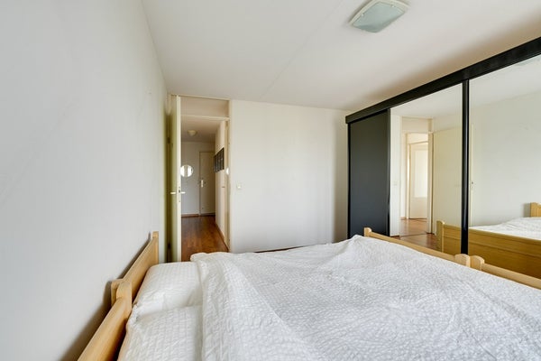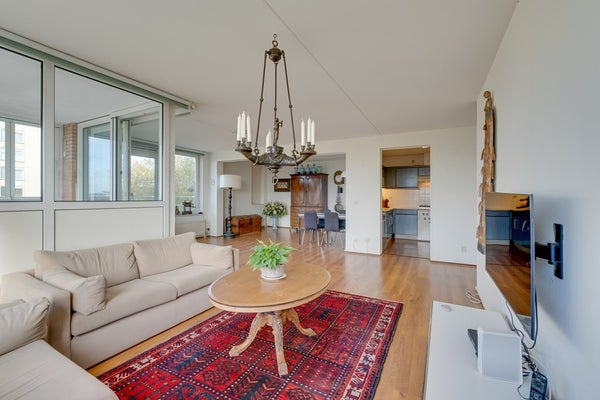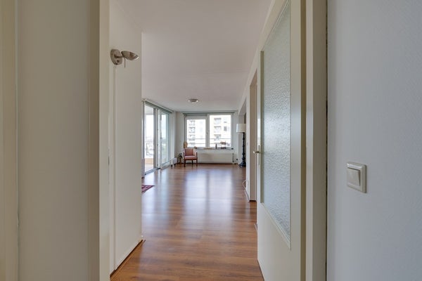 - De portiekflat heeft een woonoppervlakte van 94 m² en beschikt over 3 kamers, waarvan 2 slaapkamers;