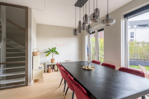 - De tussenwoning heeft een woonoppervlakte van 148 m² en beschikt over 6 kamers, waarvan 4 slaapkamers;