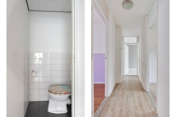 • De portiekflat heeft een woonoppervlakte van 61 m² en beschikt over 4 kamers, waarvan 3 slaapkamers;
