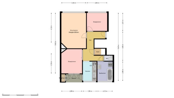 - De galerijflat heeft een woonoppervlakte van 56 m² en beschikt over 3 kamers, waarvan 2 slaapkamers;