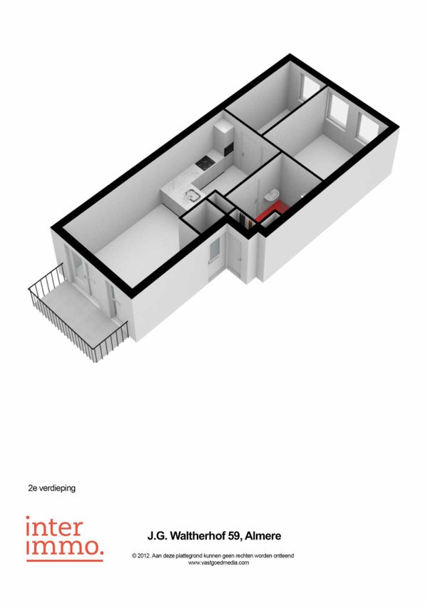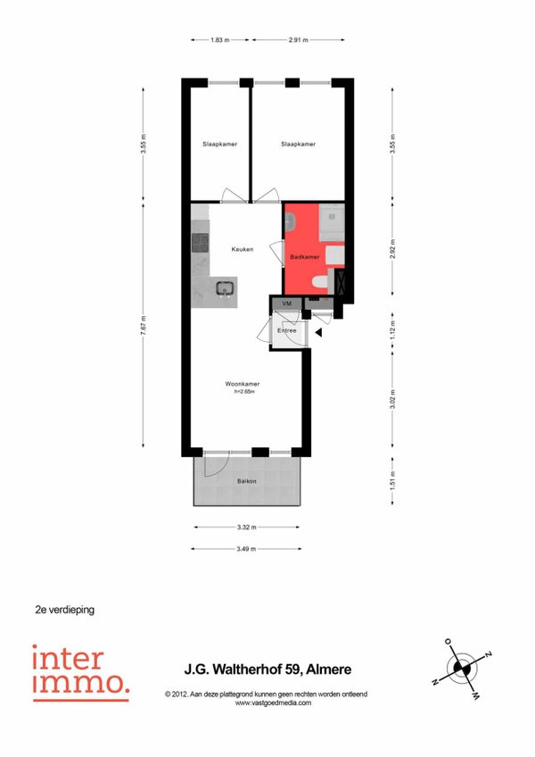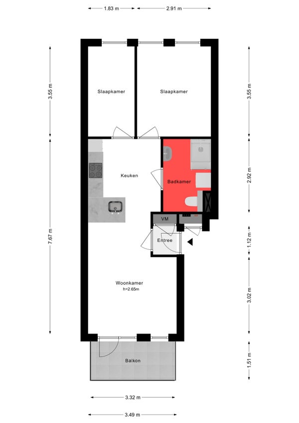 - De galerijflat heeft een woonoppervlakte van 49 m² en beschikt over 3 kamers, waarvan 2 slaapkamers;