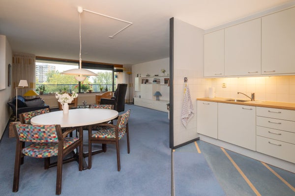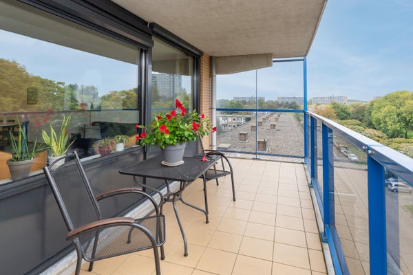 - De portiekflat heeft een woonoppervlakte van 104 m² en beschikt over 4 kamers, waarvan 3 slaapkamers;