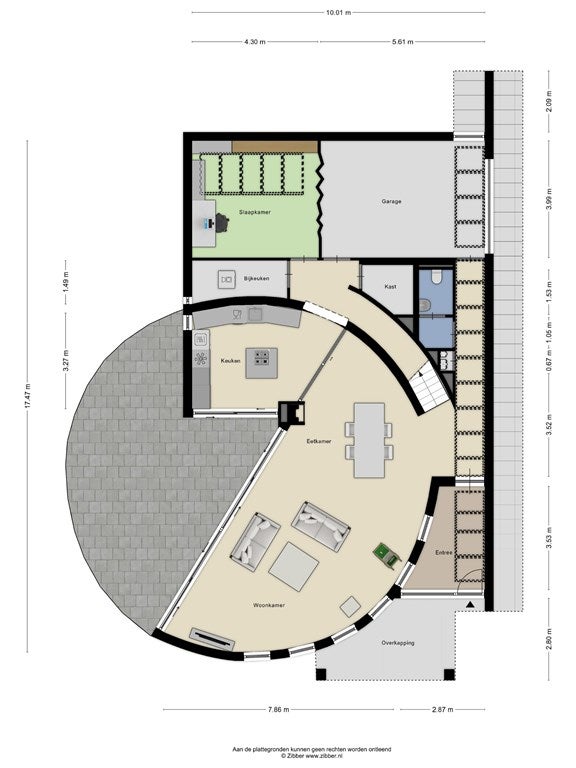 - Aanwezig (414 m², gelegen op het zuidwesten)
