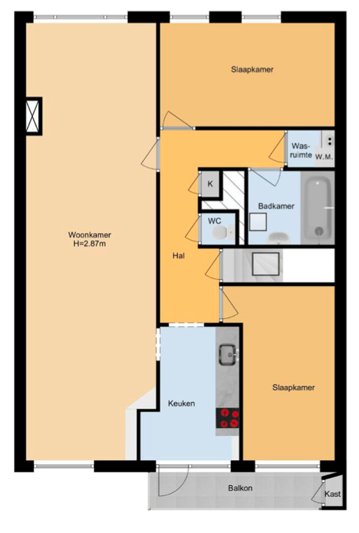 Een licht appartement van ±90m² op de 2e verdieping in het levendige Valkenboskwartier. Indeling: één ruime slaapkamer, een aparte studeer-/thuiswerkruimte, een aparte keuken en woonkamer, badkamer en toilet. Het appartement is gemeubileerd en uitgerust met individuele centrale verwarming, raambekleding, houten vloeren en spots.