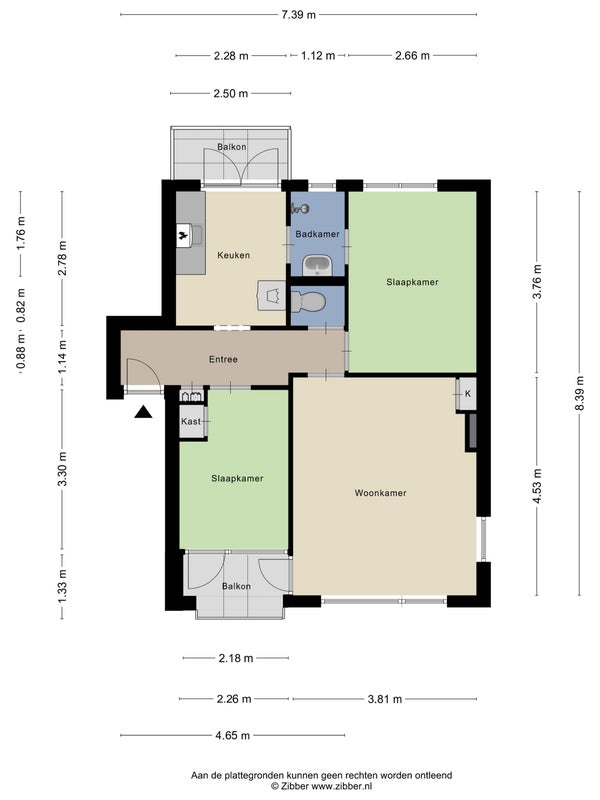 - De portiekflat heeft een woonoppervlakte van 51 m² en beschikt over 3 kamers, waarvan 2 slaapkamers;