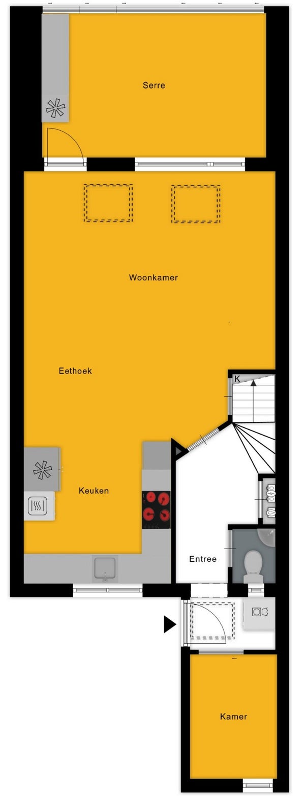 - Aanwezig (60 m², gelegen op het noordoosten)