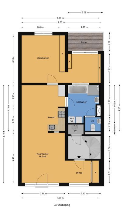- De galerijflat heeft een woonoppervlakte van 80 m² en beschikt over 3 kamers, waarvan 2 slaapkamers;