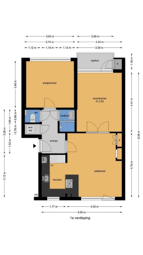 - De galerijflat heeft een woonoppervlakte van 65 m² en beschikt over 3 kamers, waarvan 1 slaapkamer;