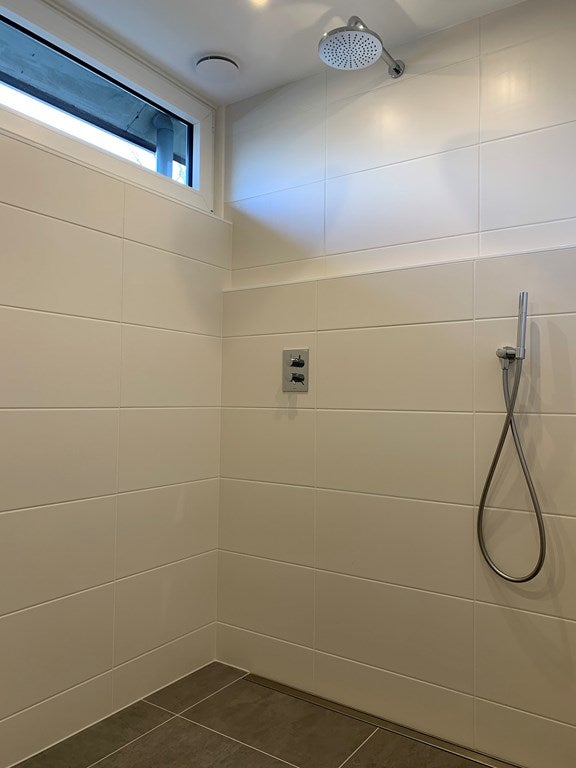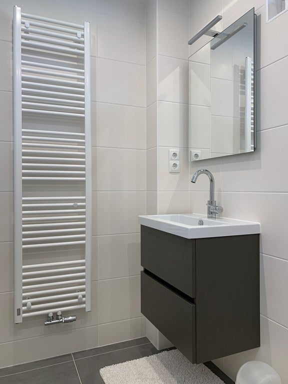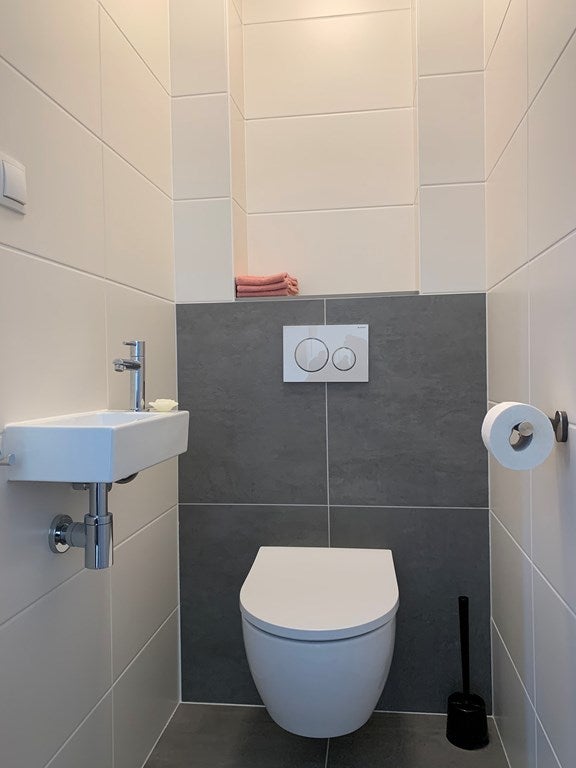 Overloop, separaat toilet (hang) met fonteintje, drie slaapkamers, badkamer met ruime inloopdouche, designradiator en wastafelmeubel