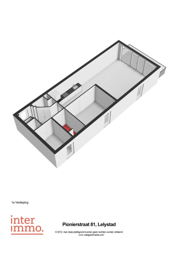 - De galerijflat heeft een woonoppervlakte van 80 m² en beschikt over 3 kamers, waarvan 2 slaapkamers;