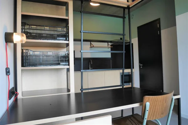 Luxe gemeubileerde studio in het moderne campuscomplex 'Wauwhaus'. De studio is uitgerust met een tweepersoonsbed (140x210cm), moderne en-suite badkamer, luxe open keuken (incl. inbouwapparatuur), royale kleding- & opbergkast, bureau met stoel, lounge sofa en high-speed internet. De studio is gelegen op de begane grond (zuidzijde). Zie plattegrond voor de exacte ligging in het complex.