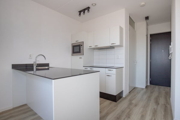 De Gamma studio's zijn 32m2. Het heeft een aparte badkamer en een ruime gang. Het appartement heeft een keuken met bar eiland, een keramische kookplaat, koelkast-vriescombinatie en combimagnetron. In het bar eiland is er ruimte voor een vaatwasser of wasmachine.