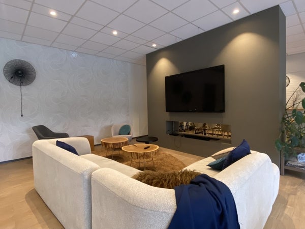 Op de begane grond van het complex bevindt zich een volledig nieuw ingerichte gemeenschappelijke ruimte met flex(werk)plekken, keuken en loungegelegenheid.