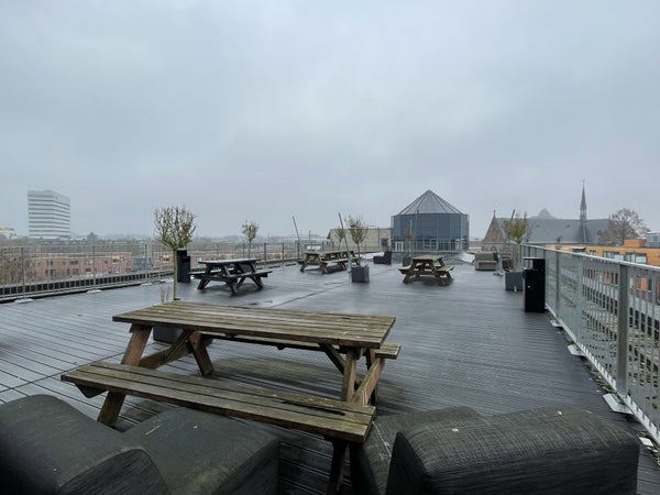Een gemeenschappelijke gym, een fietsenberging en een zonnig dakterras maken deze studio tot een echte topplek om te wonen!