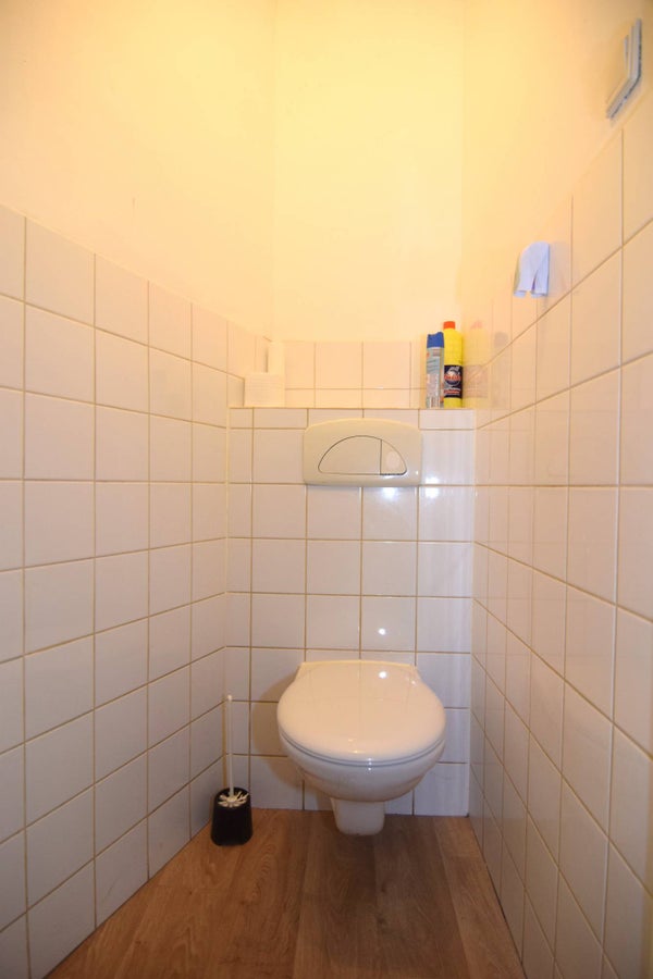 De keuken is voorzien van een koel-/vrieskast en afzuigkap. De badkamer bevindt zich in de studio en is voorzien van douche en wastafel. Het toilet is apart en wordt gedeeld met 1 persoon. Deze is direct tegenover de studio deur gelegen. Er is een gezamenlijke wasmachine en droger aanwezig.