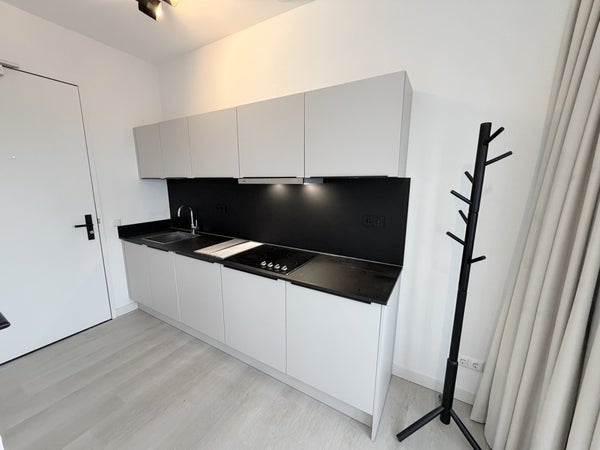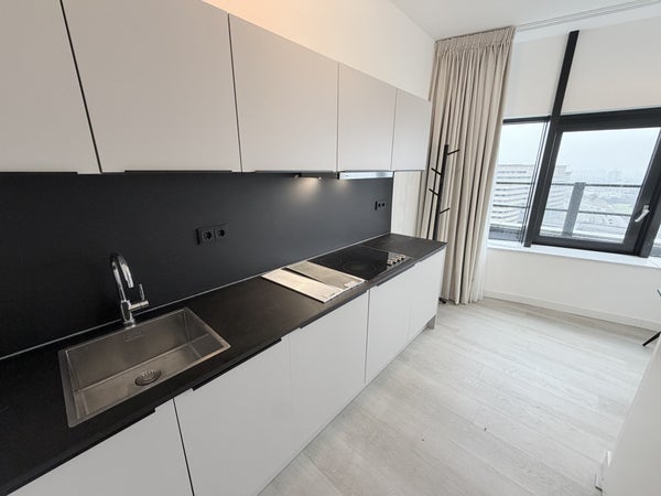 De studio is voorzien van strakke witte muren, een lichte PVC vloer, raambekleding en goede afscheiding tussen de woon- en slaapgedeelte. De woning beschikt over alle benodigdheden zoals bank, salontafels, tv-meubel, tv, kledingkast en 2-persoonsbed. De keuken is voorzien van een inductiekookplaat, afzuigkap, vaatwasser en veel opbergruimte. Verder is er bestek, glazen en service aanwezig, evenals een strijkijzer, strijkplank, koffieautomaat en waterkoker. De badkamer beschikt over een ruime inloopdouche, wastafel met meubel en hangend toilet. In het gebouw zijn gezamenlijke was- en droogruimtes aanwezig op de begane grond en op de 3e verdieping. Daarnaast is er een gezamenlijke fietsenberging.