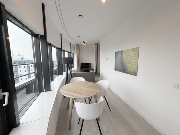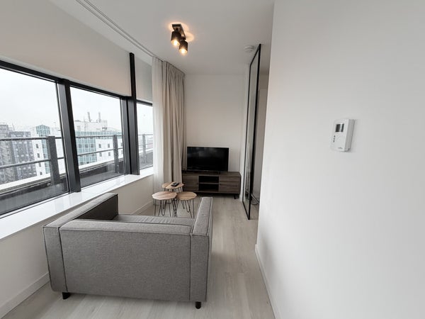 Volledig gemeubileerde studio met prachtig uitzicht, gelegen aan de Rivium 1e Straat in de moderne Rive Tower.