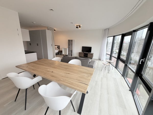 Volledig gemeubileerde studio, gelegen aan de Rivium 1e Straat in de moderne Rive Tower.