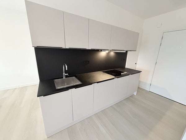 Gezamenlijke entree op de begane grond met postbussen, bellentableau en liften. 2e verdieping De studio is voorzien van strakke witte muren, een lichte PVC vloer, raambekleding en goede afscheiding tussen de woon- en slaapgedeelte. De woning beschikt over alle benodigdheden zoals bank, salontafels, kleed, tv-meubel, tv, kledingkast en 2-persoonsbed. De keuken is voorzien van een inductiekookplaat, afzuigkap, vaatwasser en veel opbergruimte. Verder is er bestek, glazen en service aanwezig, evenals een strijkijzer, strijkplank, koffieautomaat en waterkoker. De badkamer beschikt over een ruime inloopdouche, wastafel met meubel en hangend toilet. In het gebouw zijn gezamenlijke was- en droogruimtes aanwezig op de begane grond en op de 3e verdieping. Daarnaast is er een gezamenlijke fietsenberging.
