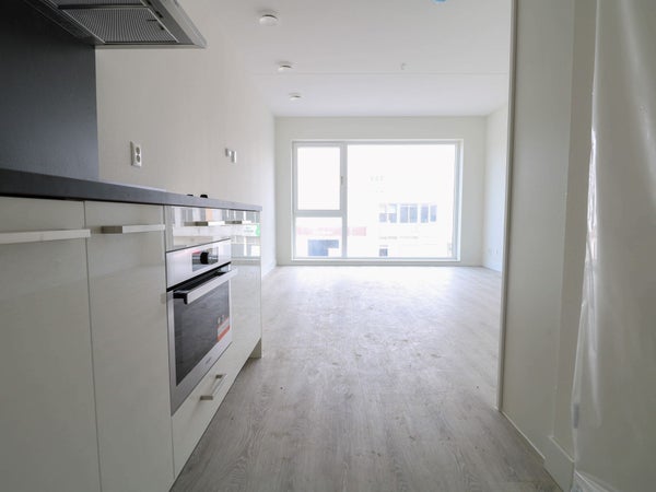 Via de gesloten galerij en de lift (of trap) komt u in de gang van de woning welke u toegang verleent tot uw woning met slaapkamer/woonkamer, badkamer met toilet en woonkamer met open keuken.
