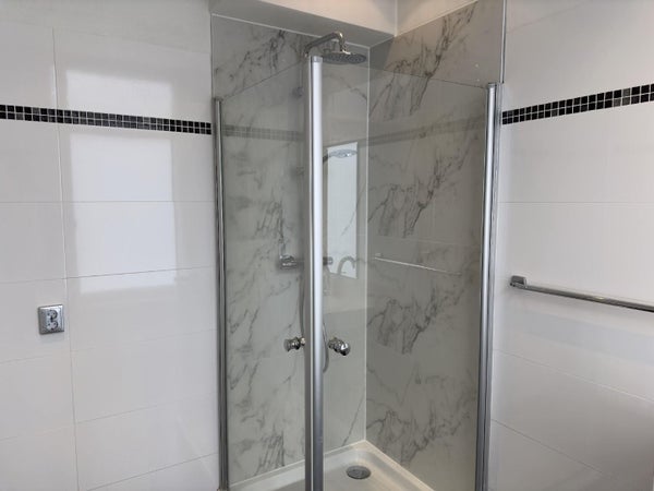 - Badkamer: Aan de voorzijde met douche, wastafel en verwarmd handdoekenrek