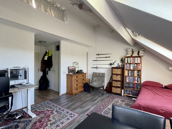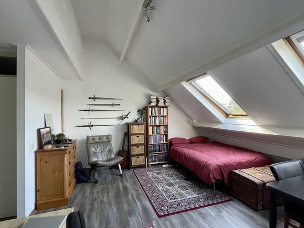 De woon/slaapkamer van 20 m2 is praktisch in te delen, de keuken is gescheiden van het woongedeelte.