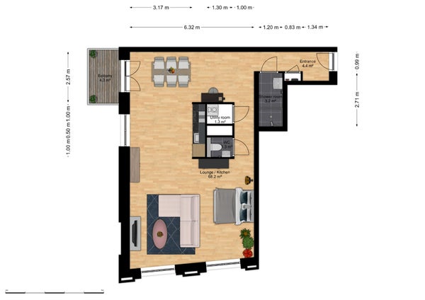 Het Type S6 appartement is een studio appartement gelegen binnen de Lux Cohesion. Deze studio heeft een badkamer, apart toilet en een woonkamer met een complete keuken. De keuken omvat een vaatwasser, koelkast/vriescombinatie, keramische kookplaat en een combi-oven.