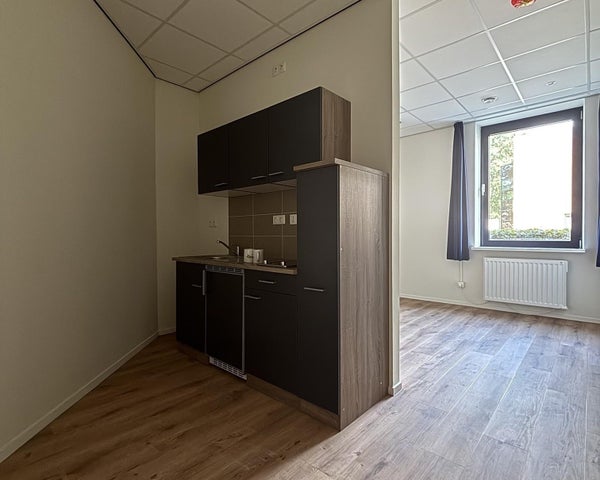 Per 1 maart komt er een zelfstandige studio (ca. 21m2) beschikbaar in het complex "Camp1us" te Emmen. De studio is voorzien van een eigen keuken en badkamer. De keuken is voorzien van een elektrische kookplaat, wastafel, inbouwkoelkast en voldoende opbergruimte. De badkamer is voorzien van een inloop douche, hangend toilet, wastafel met mengkraan, designradiator en een bovenkastje met spiegel.