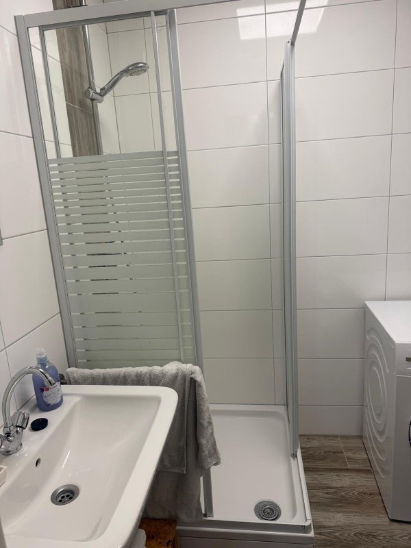 Woon / slaapkamer v.v. laminaatvloer, open keuken met koelkast en vriesvak, afzuigkap, elektrisch koken en magnetron. Moderne badkamer v.v. douche, toilet, wastafel, radiator en wm aansluiting.