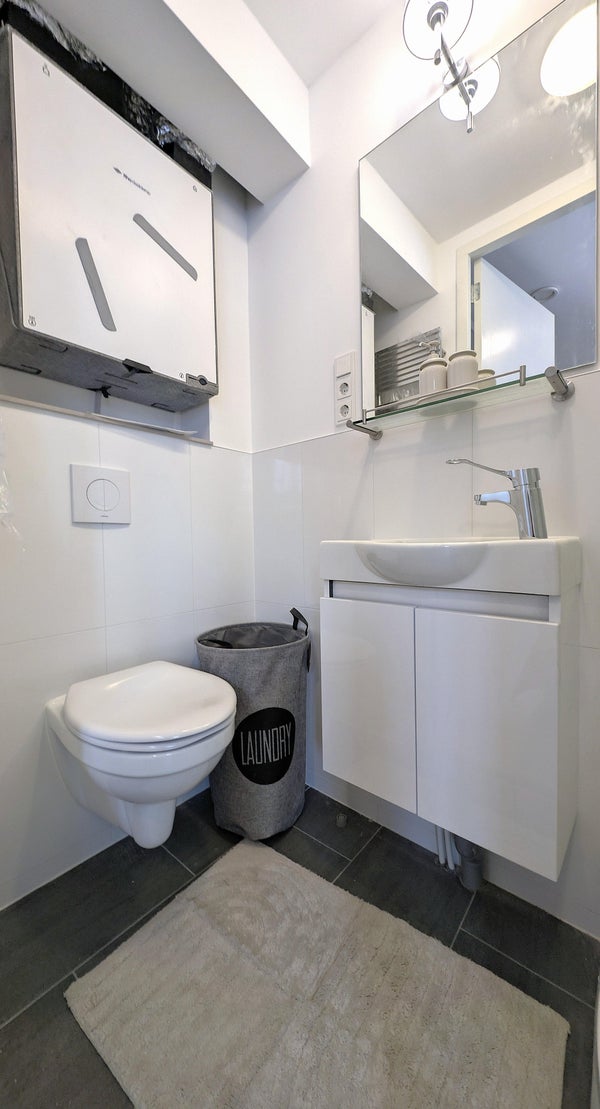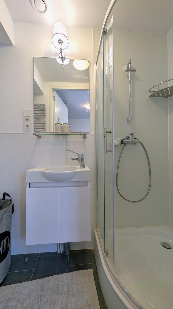De badkamer is compact maar functioneel en voorzien van de benodigde sanitaire voorzieningen.